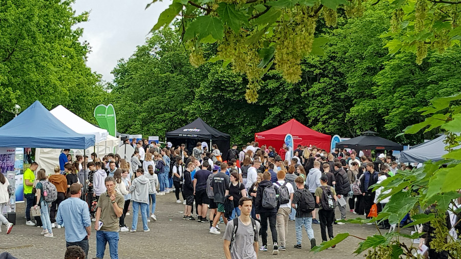 „Tut das gut, nach all den virtuellen Meetings mal wieder raus zu kommen! Gerade bei der Nachwuchs-Werbung ist es für Unternehmen wichtig, junge Leute live zu treffen und ihnen zu zeigen, was wir von unseren Azubis erwarten und was wir ihnen zu bieten haben.“ Ein Aussteller bringt die Meinung aller auf den Punkt: Etwa 30 Betriebe sind sichtlich erfreut, sich bei der Open Air Ausbildungsmesse der Agentur für Arbeit Montabaur wieder persönlich vorstellen zu können – und dies vor einem großen Publikum.